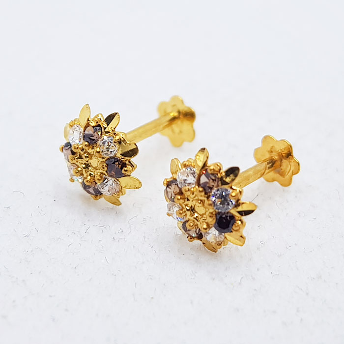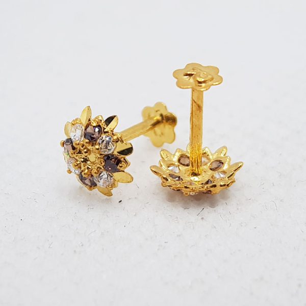 Gold Tops TP0164 Net Weight: 0.740 Grams Round Shape Three Colors Ladies Gold Tops TP0164 Gold Tops with Screw Stopper 7 Days Return Policy Free Shipping Gold Rate: 240,000 /Tola