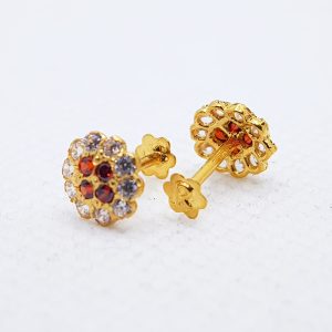 Gold Tops TP0163 Net Weight: 0.590 Grams Round Shape Red Color Ladies Gold Tops TP0163 Gold Tops with Screw Stopper 7 Days Return Policy Free Shipping Gold Rate: 240,000 /Tola