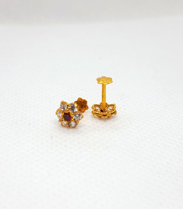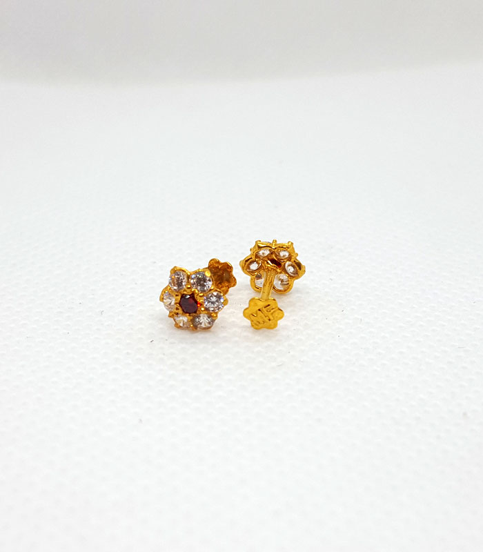 Gold Tops TP0082 Net Weight: 0.600 Grams Gold Tops with Gold Stopper Exclusive Product 7 Days Return Policy With Red Stones Free Shipping Gold Rate: 240,000 /Tola