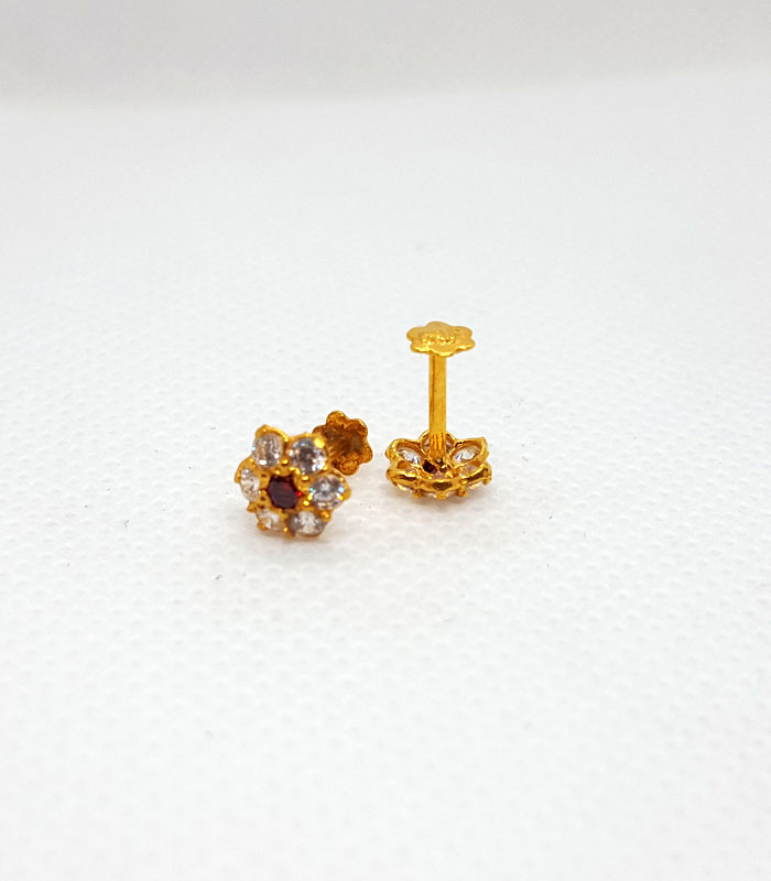 Gold Nose Pins NP0022 Net Weight: 0.170 Grams Gold Nose Pins with Gold Stopper Exclusive Deal Gold Nose Pin With Red Stone 7 Days Return Policy Free Shipping
