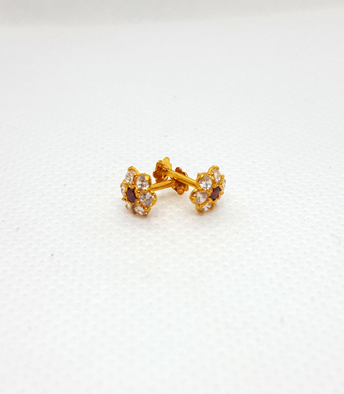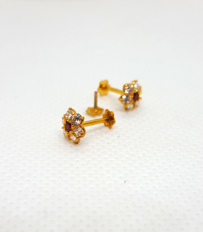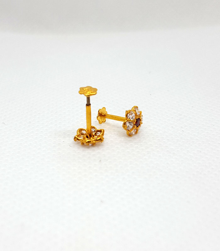 Gold Tops TP0307 Net Weight: 0.470 Grams Gold Tops For Girls With White Drop Stone Gold Tops with Screw Stopper 7 Days Return Policy Free Shipping Gold Rate: 245,000/Tola