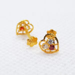 Gold Tops TP0220 Net Weight: 0.630 Grams Heart Shape White Stones Ladies Gold Tops Gold Tops with Screw Stopper 7 Days Return Policy Free Shipping Gold Rate: 240,000 /Tola
