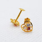 Gold Tops TP0232 Net Weight: 0.350 Grams Heartless Ladies Gold Tops White Red Stone Gold Tops with Screw Stopper 7 Days Return Policy Free Shipping Gold Rate: 240,000 /Tola