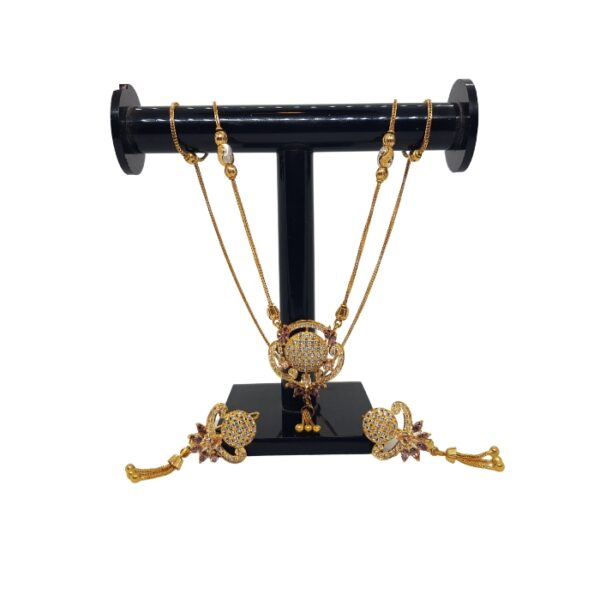 Brand Puregold.pk is online E-commerce Store.It is managed by puregold technologies (pvt) Limited.Pure Gold ‘s own production of quality Latest Pure Gold Mala Set For Bridal .American zircons Stones are fitted by Karachi’s best handicraft workers.Hence They are using tradition tools & Great quality polishing tools.So That perfect looking & Its unique and diligent latest design gives them feels the superiority to its users. Latest Pure Gold Mala Set For Bridal in 1 different size Only.as a result we choose best available design that match with your likeness from the reference images above. Free Shipping besides it is available all over Pakistan with 7 days free return/exchange policy. This is for Latest Pure Gold Mala Set For Bridal. For Latest Gold Rate in Pakistan For Our Facebook page