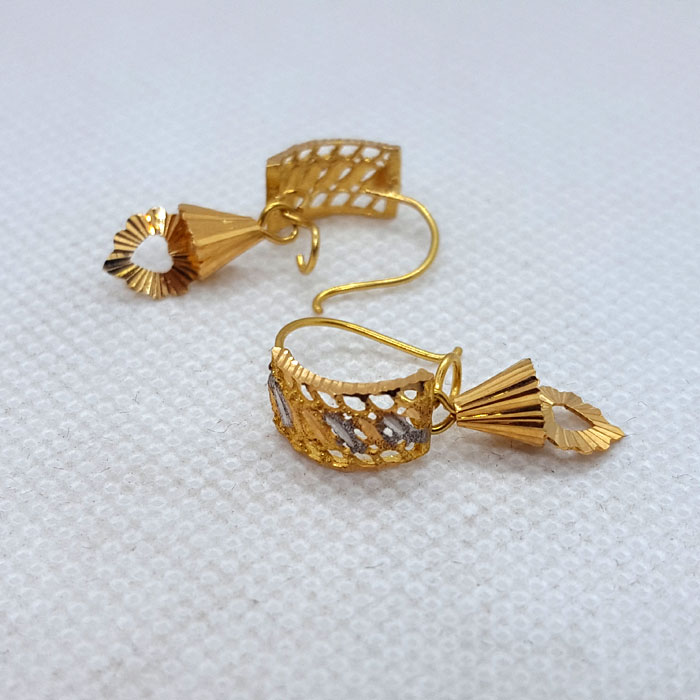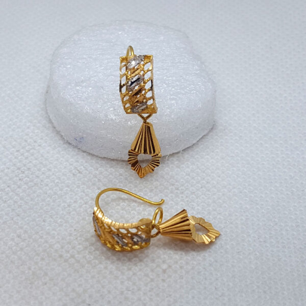 Ear Ring: ER000132 Net weight: 2.390 grams Polish weight 0.700 grams Gross Weight: 3.090 Grams 21 Karat Gold Ring Ring Size: Customization available Price is Mention on Gold Rate 235,000/Tola