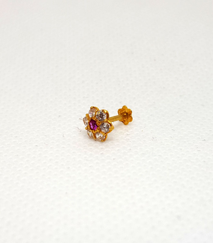Gold Nose Pins NP0247 Net Weight: 0.300 Grams Exclusive Deal Gold Nose Pin For Girls Pink & White Stones Gold Nose Pin For Girls 7 Days Return Policy Free Shipping