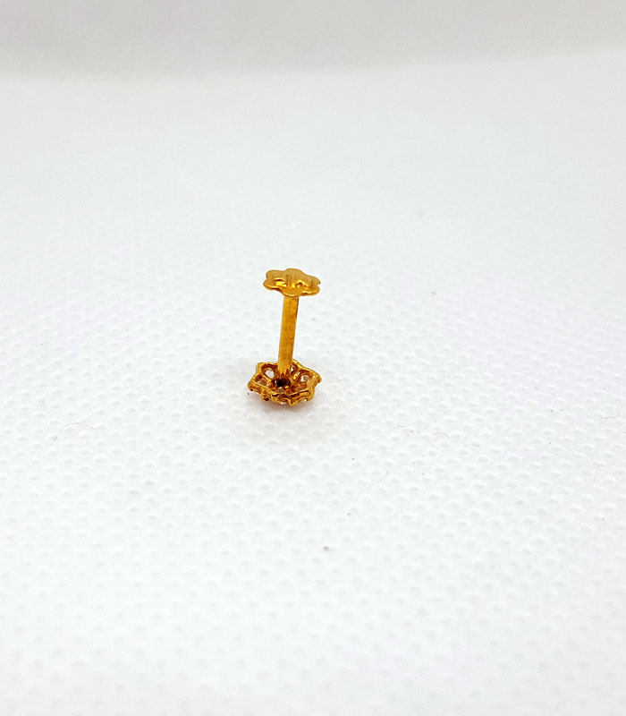 Gold Nose Pins NP0030 Net Weight: 0.180 Grams Gold Nose Pins with Gold Stopper Limited Time Offer Nose Pin With Pin and White Stones 7 Days Return Policy Free Shipping