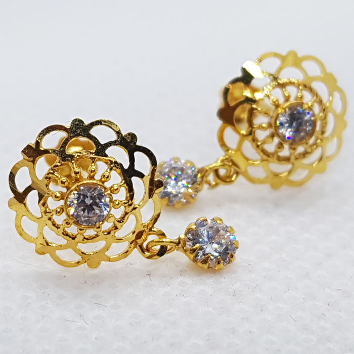 Brand Puregold.pk is online E-commerce Store.It is managed by puregold technologies (pvt) Limited.Pure Gold ‘s own production of quality Round Shape Gold Tops Ladies with White Drop . American zircons Stones are fitted by Karachi’s best handicraft workers.Hence They are using tradition tools & Great quality polishing tools.So That perfect looking & Its unique and diligent latest design gives them feels the superiority to its users. Round Shape Gold Tops Ladies with White Drop in 1 different size Only.as a result we choose best available design that match with your likeness from the reference images above. Free Shipping besides it is available all over Pakistan with 7 days free return/exchange policy. This is for Round Shape Gold Tops Ladies with White Drop . For Latest Gold Rate in Pakistan For Our Facebook page