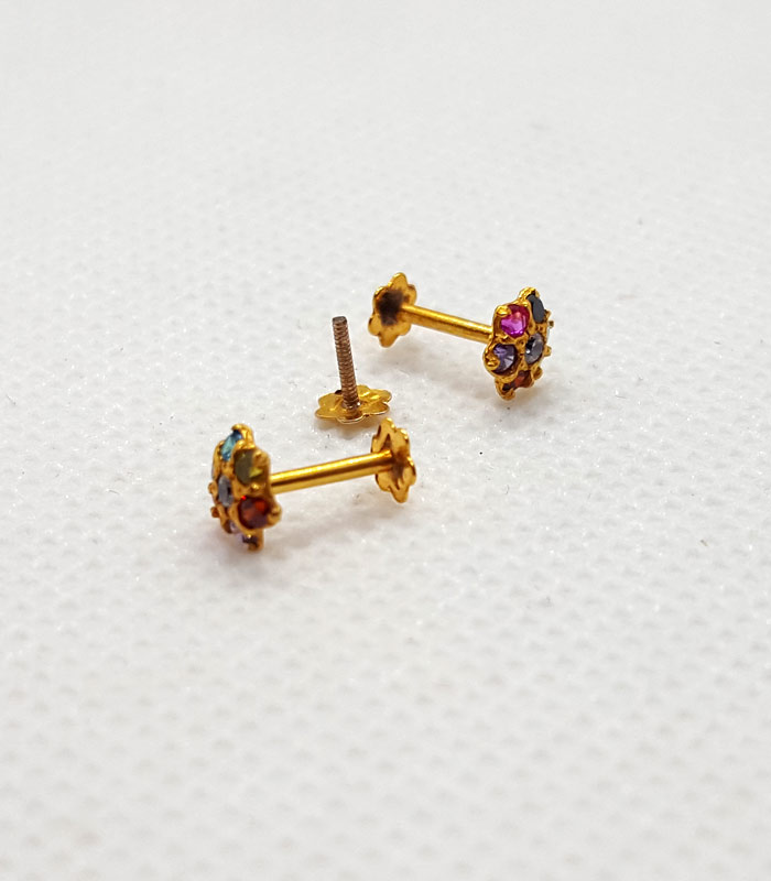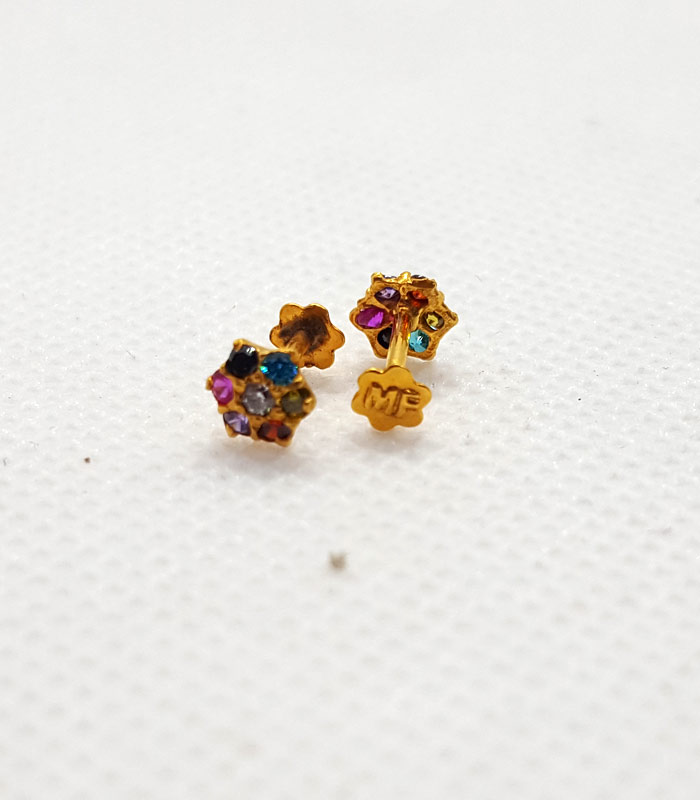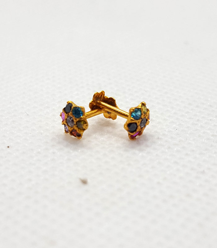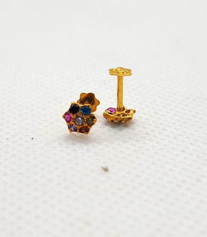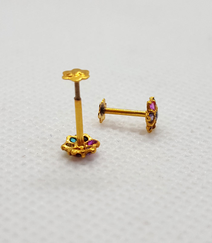 Gold Tops TP0011 Net Weight: 0.380 Grams Gold Tops with Screw Stopper Strangi Multi Color Stones Free Shipping Gold Rate: 240,000 /Tola