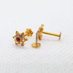 Gold Tops TP0307 Net Weight: 0.470 Grams Gold Tops For Girls With White Drop Stone Gold Tops with Screw Stopper 7 Days Return Policy Free Shipping Gold Rate: 245,000/Tola
