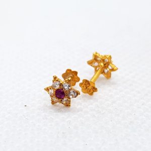 Gold Tops TP0080 Net Weight: 0.550 Grams Gold Tops with Gold Stopper Traditional Design 7 Days Return Policy With Pink Stones Free Shipping Gold Rate: 240,000 /Tola