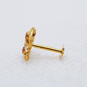 Gold Nose Pins NP0081 Net Weight: 0.110 Grams Exclusive Deal Nose Pin With Red Stone Gold Nose Pin With Gold Stopper 7 Days Return Policy Free Shipping